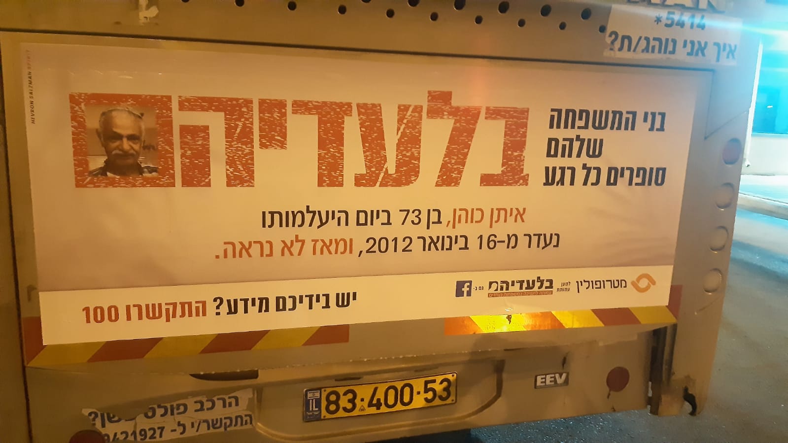 כיום למעלה מ-600 אזרחים נעדרים בארץ, והמספר גדל כל שנה. עמותת 'בלעדיהם' בשיתוף חברת 'מטרופולין' תחבורה הציבורית עלו לראשונה בשנת 2022 בקמפיין ראשון מסוגו במטרה לשנות את המציאות ולסייע במציאת הנעדרים.