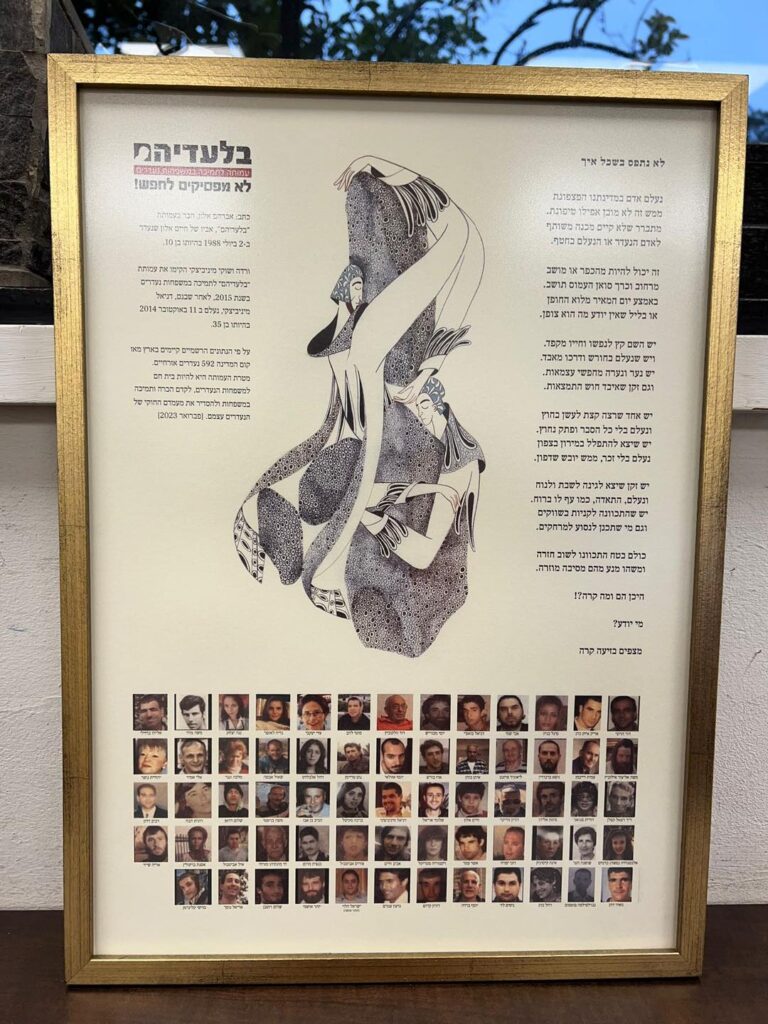השיר הוגש כתשורה והערכה לנשיא המדינה כשהוא מאוייר על ידי המאיירת קרן כץ. Keren Katz, שהוסיפה איור של שני אנשים הנאחזים בסלע, ויוני ליכט שערך את השיר והוסיף את תמונות 64 הנעדרים שמשפחותיהם הצטרפו לעמותה. Tan Licht